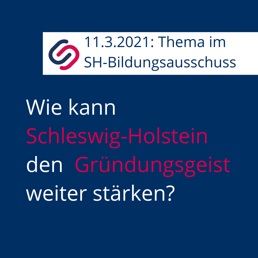 Am 11.03.2021 ist der Antrag „Gründungsgeist in Schleswig-Holstein weiter stärken“ Thema im SH-Bildungsausschuss. Als Verein der Gründungsunterstützenden begrüßt StartUp SH e.V. den Antrag und hat in einer Stellungnahme konkrete Vorschläge und weitergehende Ideen eingebracht.